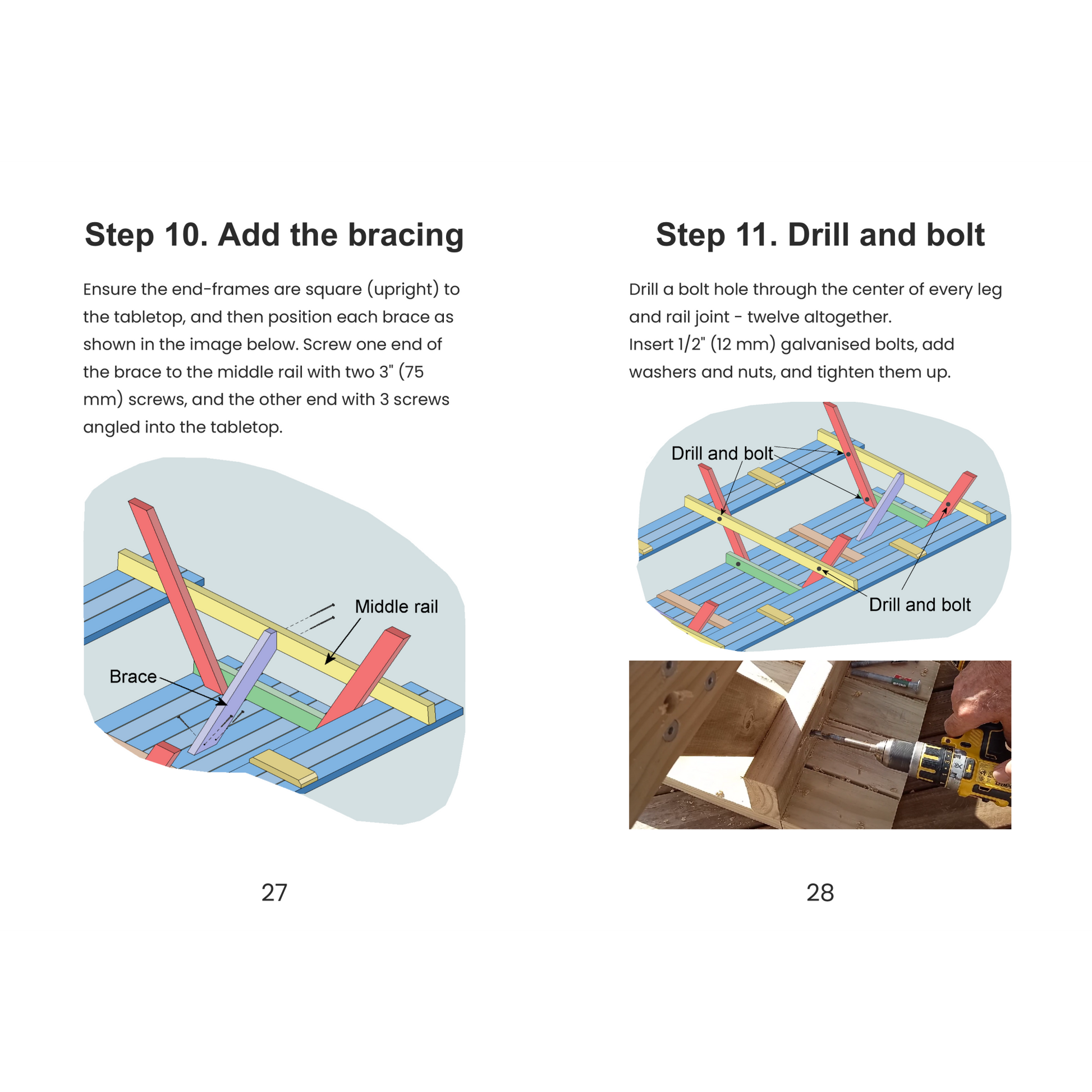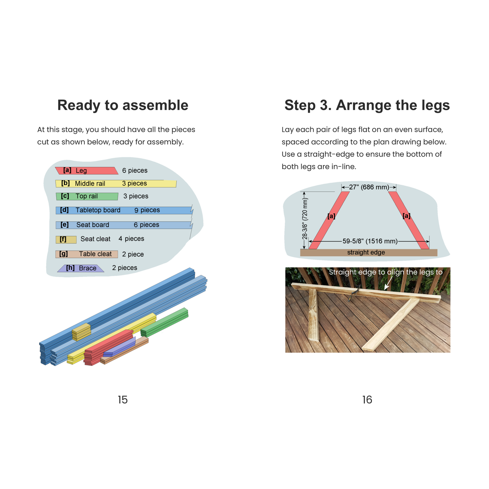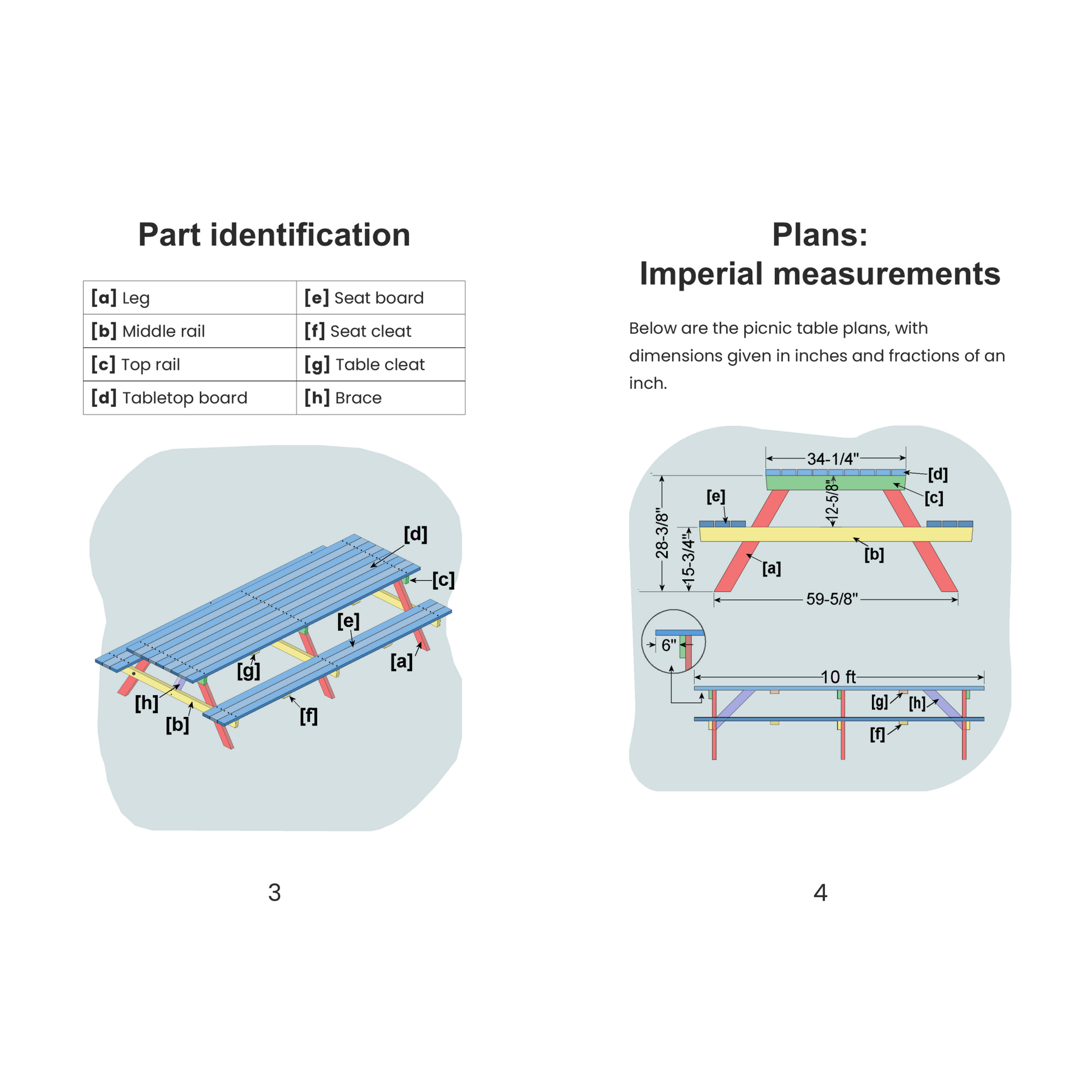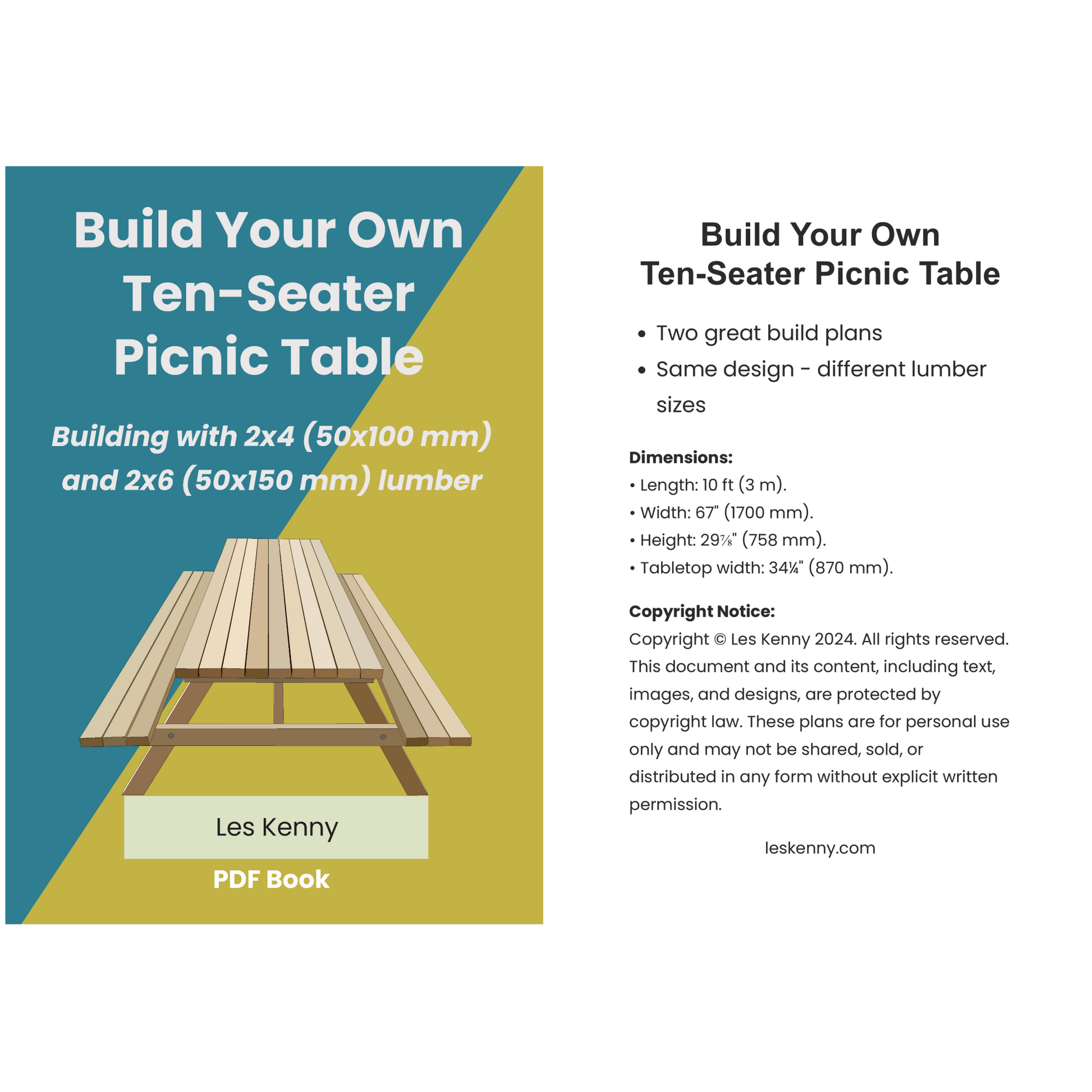 Learn to build your own ten-seater picnic table with this detailed, step-by-step guide. This 32 page downloadable PDF includes two project plans using different lumber sizes, offering versatility and ease. Ideal for DIY enthusiasts, the plans provide clear measurements in both imperial and metric units, shopping lists, cutting lists, and instructions with illustrations. Perfect for outdoor gatherings, the table design ensures comfort with wide seats and a spacious tabletop. Build a sturdy, professional-grade picnic table for your backyard with minimal waste and maximum satisfaction.