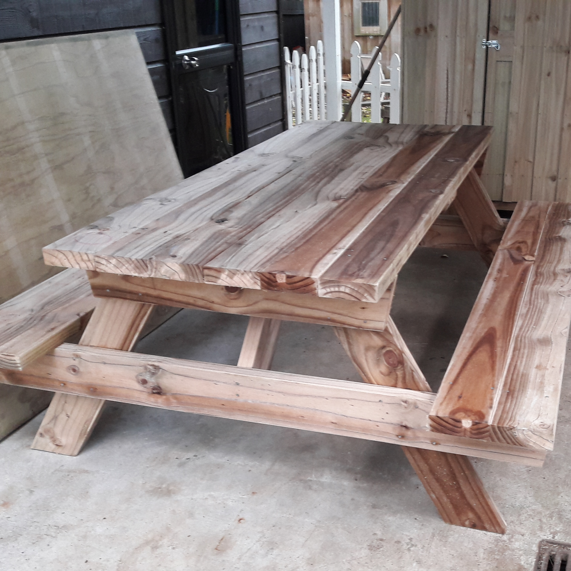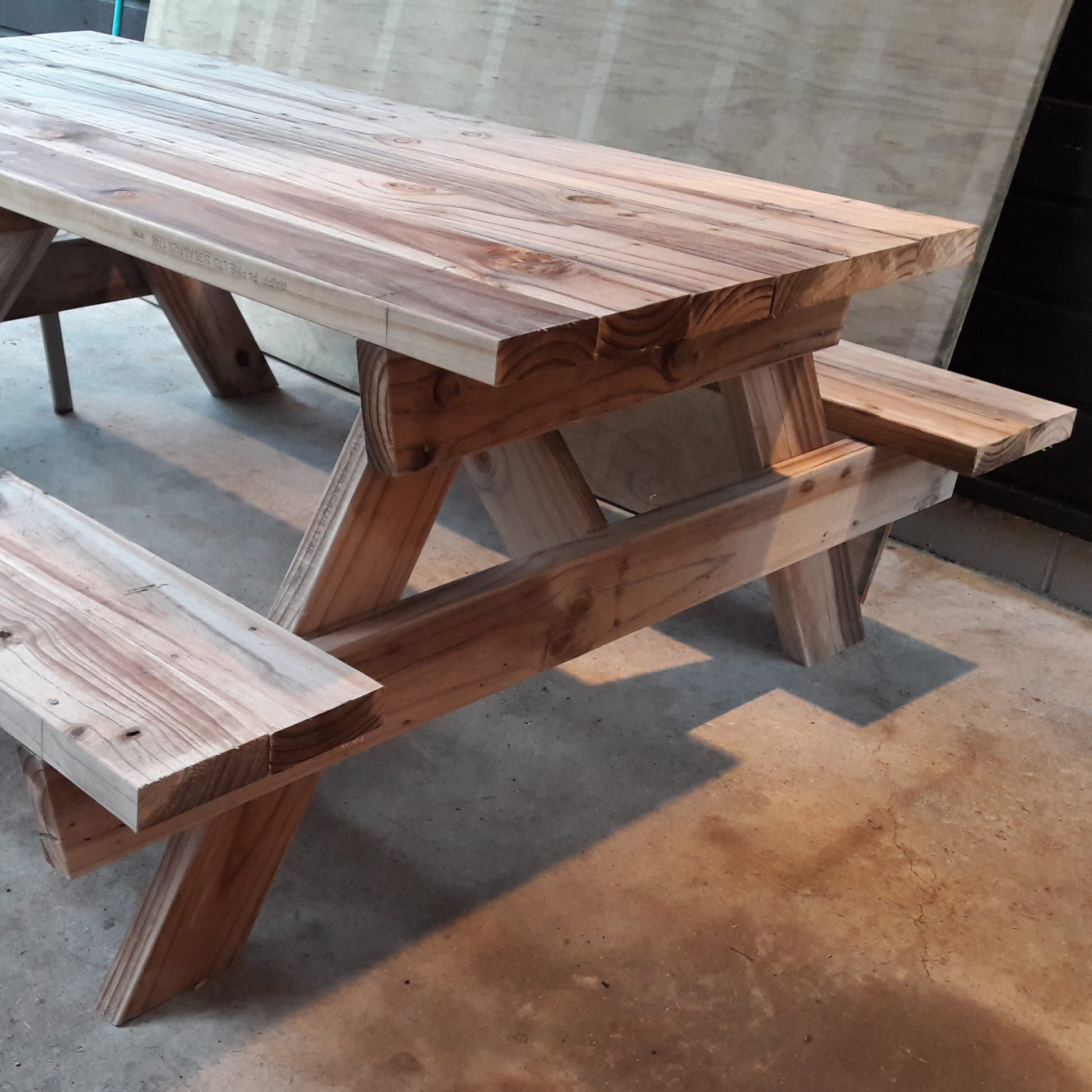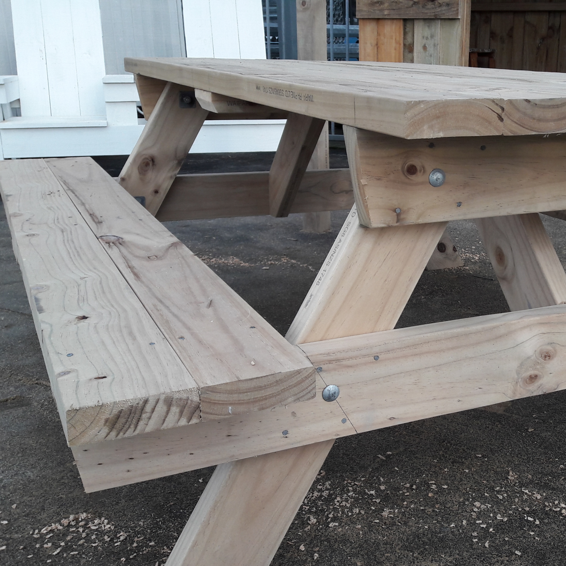 DIY plans for a good strong comfortable 6 seater picnic table made out of 2x 6 (50x150mm) lumber.