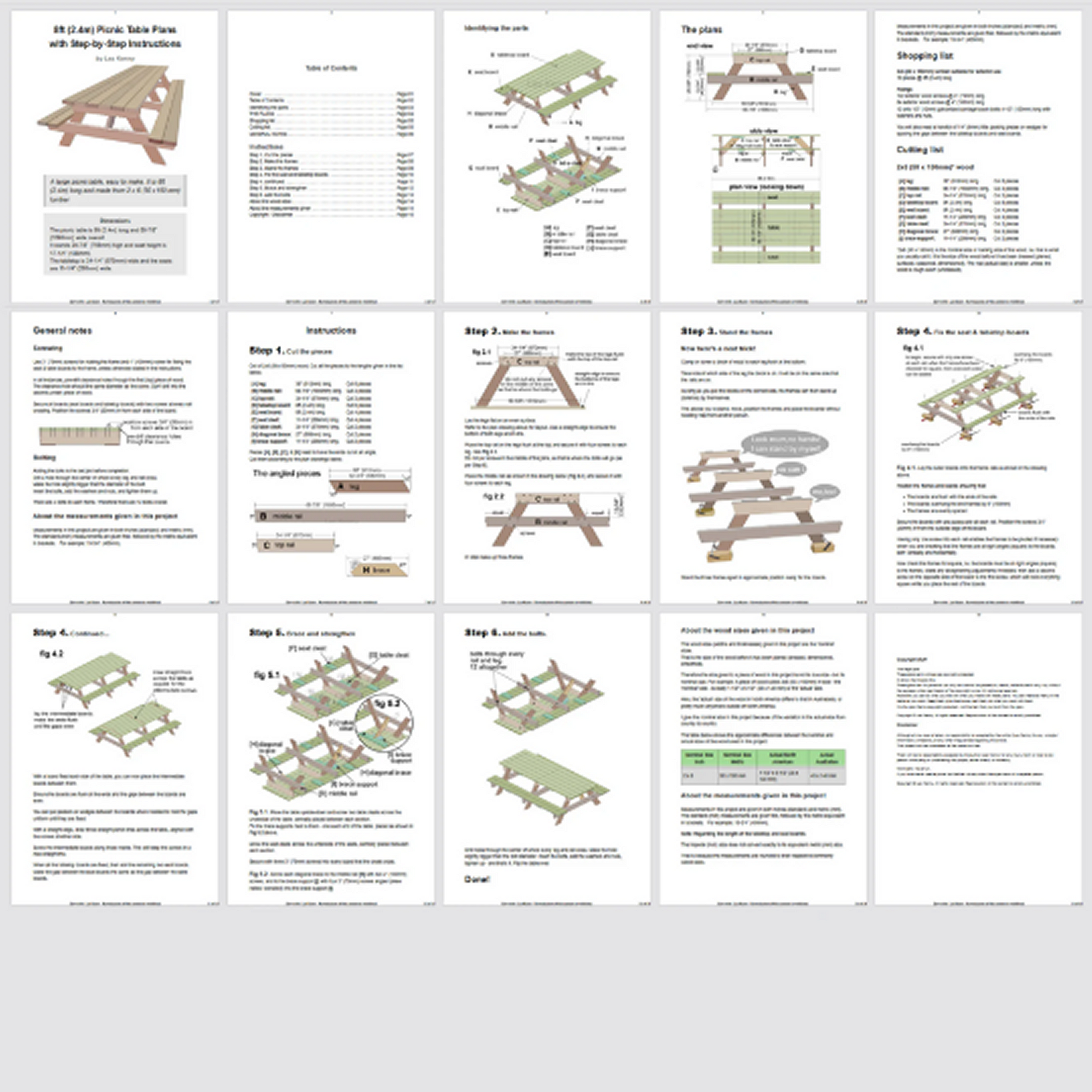 DIY plans to build an 8ft (2400mm) long traditional picnic table